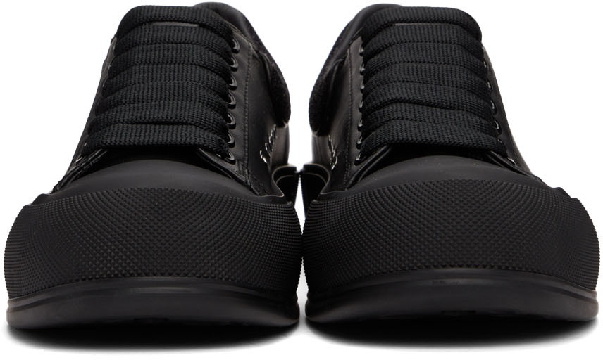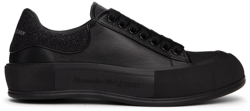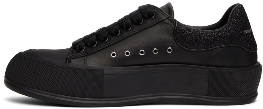 Alexander McQueen Black Glitter Deck Plimsoll Sneakers (682410WIB66)
