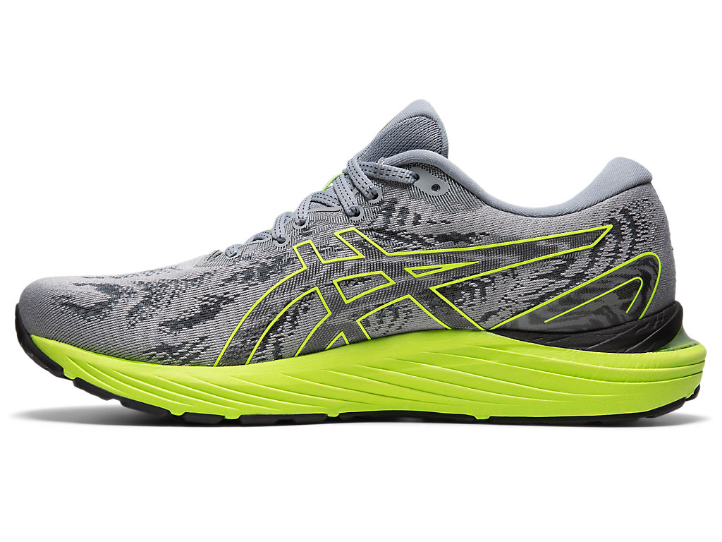 De GEL-CUMULUS™ 23-schoen is erop gericht om een nog soepelere en zachtere tred te bieden, terwijl in de heren- en damesmodellen een op mannen en vrouwen afgestemde technologie wordt toegepast. Wij blijven inspiratie putten uit stapelwolken en hebben het bovenwerk en de tussenzool van deze neutrale hardloopschoen opnieuw vormgegeven door een meer holistische ontwerpbenadering toe te passen die zich aanpast aan de anatomie van een hardloper in beweging. Het bovenwerk van mesh is omwikkeld voor een nog zachter gevoel en biedt ondersteuning op strategische plekken, terwijl andere vezels meer open blijven om de ventilatie te verbeteren. Het bovenwerk beweegt beter mee met de beweging van de tussenzool , wat zorgt voor een soepelere pas van het afrollen van de voet naar de teenafzet. Om de demping en flexibiliteit te verbeteren, hebben we een 3D SPACE CONSTRUCTION toegevoegd aan de bovenlaag van de tussenzool. Deze technologie wordt toegepast via een reeks van strategisch geplante onderdelen in de tussenzool, waardoor hardlopers meer compressie kunnen ervaren in een specifiek gebied zonder de duurzaamheid of stabiliteit te verminderen. Deze onderdelen zijn afgestemd op specifieke mannen- en vrouwenmodellen om de biomechanische gegevens van elk geslacht aan te pakken. Door hardlopers te helpen tijdens de landingsfase van hun pas het schuim op de juiste manier te comprimeren, bevordert deze schoen een soepelere tred en betere schokabsorptie. Onder de hiel is zachtere GEL™-technologie geplaatst om de demping te verbeteren, terwijl de FLYTEFOAM™-tussenzool voor een soepeler en meer ondersteunende tred zorgt. Het ASICS LITE Rubber is duurzaam in de buitenzool ingebouwd, is zacht en speciaal ontwikkeld om de duurzaamheid op gebieden met veel impact te verbeteren.