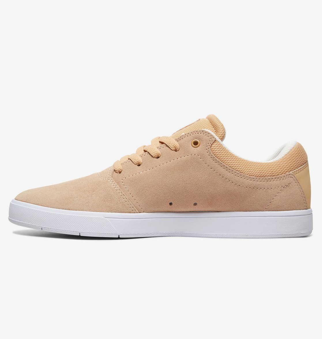 Bovendeel van leer, nubuck, suède of canvas, Effen ontwerp van de neus, Gezeefdrukt logo in reliëf op de zijkant, Schuimgevoerde tong en rand voor meer draagcomfort en steun, Extra comfortabele mesh voering, Ademende ventilatie-openingen, Prestatiegerichte binnenzool, Loopvlak op basis van het diepe DC Pill Pattern profiel