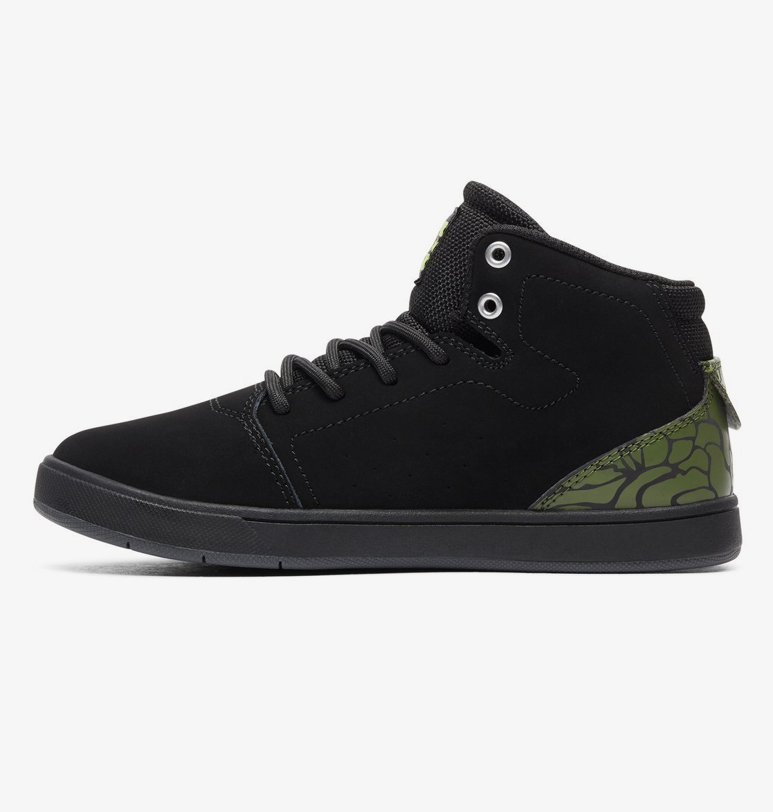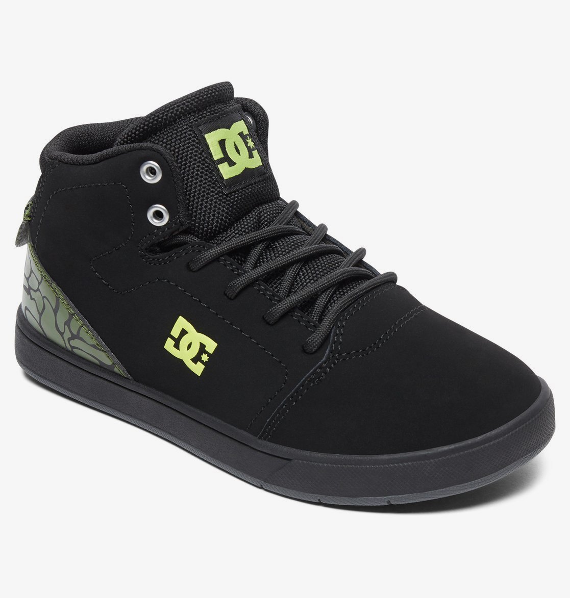 Bovendeel met een mix van leer, suède en/of canvas met stof, Gezeefdrukt logo in reliëf op de zijkant, Schuimgevoerde tong en rand voor meer draagcomfort en steun, Extra comfortabele mesh voering, Effen ontwerp van de neus, Ademende ventilatie-openingen, Loopvlak op basis van het diepe DC Pill Pattern profiel, Geconstrueerde binnenzool