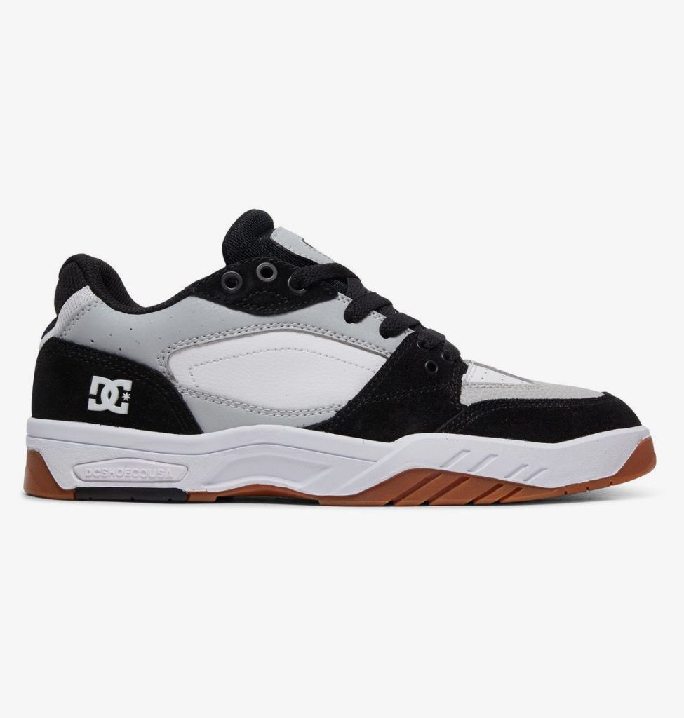 Bovendeel van leer, nubuck of mesh [afhankelijk van de kleur], Bovendeel met meerdere panelen, Gelast logo op de hiel, Schuimgevoerde tong en rand voor meer draagcomfort en steun, Extra comfortabele mesh voering, Inlegzool van EVA, Voorgevormde prestatiegerichte cupsole, Loopvlak op basis van het DC Pill Pattern profiel