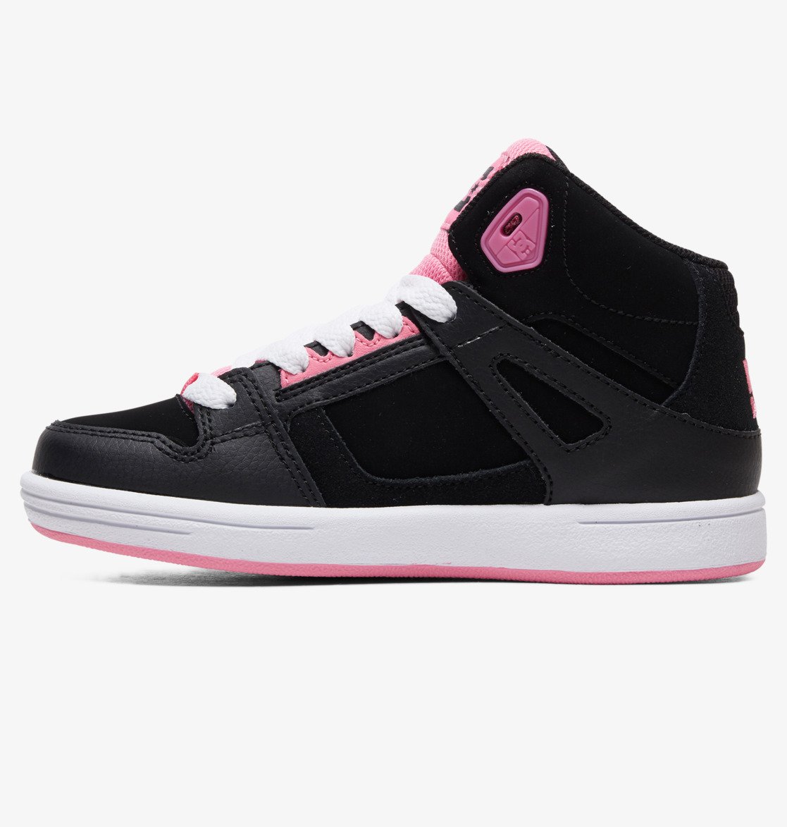 Bovendeel van leer, textiel en/of suède [afhankelijk van de kleur], Gevoerd met mesh, Schuimgevoerde tong en rand voor meer draagcomfort en steun, Gegoten TPR-oogje, Extra duurzame neus, Ademende ventilatie-openingen, Slijtvaste rubberen buitenzool, Loopvlak op basis van het DC Pill Pattern profiel, Cupzoolconstructie