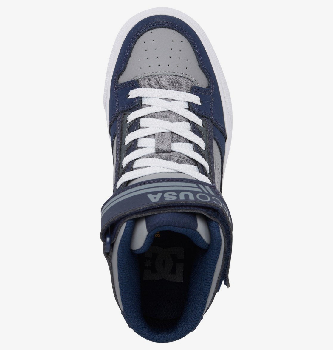 Halfhoog model, Klittenbandsluiting met elastische veters, Mix van materialen, Extra duurzame neus met deklaag, Schuimgevoerde tong en rand voor meer draagcomfort en steun, Ademende ventilatie-openingen in het bovendeel, Gegoten TPR-oogje, Gevulkaniseerde constructie voor een goed boardgevoel en buigbaarheid van de zool, Slijt- en gripvaste rubberen buitenzool, Loopvlak op basis van het DC Pill Pattern profiel