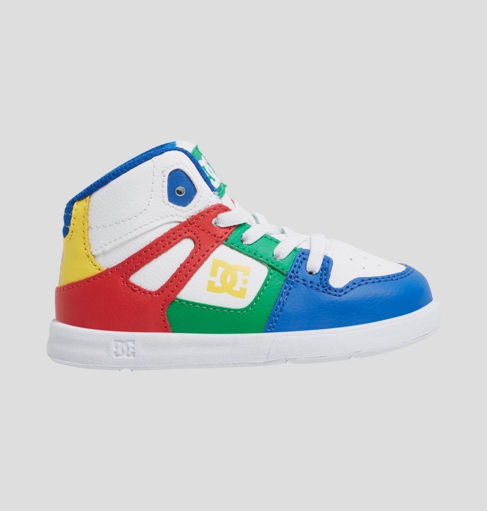 Synthetisch en leren bovendeel, Elastische veters, Schuimgevoerde tong en rand voor meer draagcomfort en steun, Overlaag op de neus voor optimale duurzaamheid, Unilite buitenzool met loopvlak op basis van het DC Pill Pattern profiel