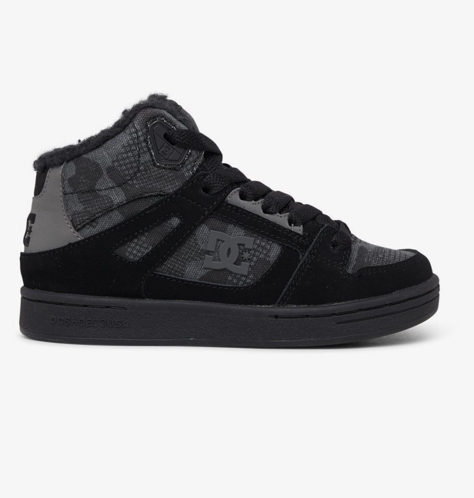Mix van nubuck, leer en/of canvas, Warme sherpa voering, Extra duurzame neus met deklaag, Schuimgevoerde tong en rand voor meer draagcomfort en steun, Gegoten TPR-oogje, Slijt- en gripvaste rubberen buitenzool, Loopvlak op basis van het DC Pill Pattern profiel, Geconstrueerde binnenzool