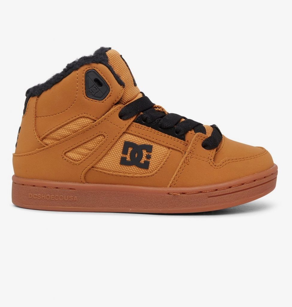 Mix van nubuck, leer en/of canvas, Warme sherpa voering, Extra duurzame neus met deklaag, Schuimgevoerde tong en rand voor meer draagcomfort en steun, Gegoten TPR-oogje, Slijt- en gripvaste rubberen buitenzool, Loopvlak op basis van het DC Pill Pattern profiel, Geconstrueerde binnenzool