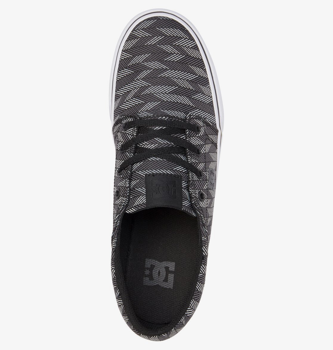 Bovendeel van textiel, Gevoerd met mesh, HD gedrukt logo, Slijt- en gripvaste rubberen buitenzool, Loopvlak op basis van het diepe DC Pill Pattern profiel, Gevulkaniseerde constructie voor een goed boardgevoel en buigbaarheid van de zool