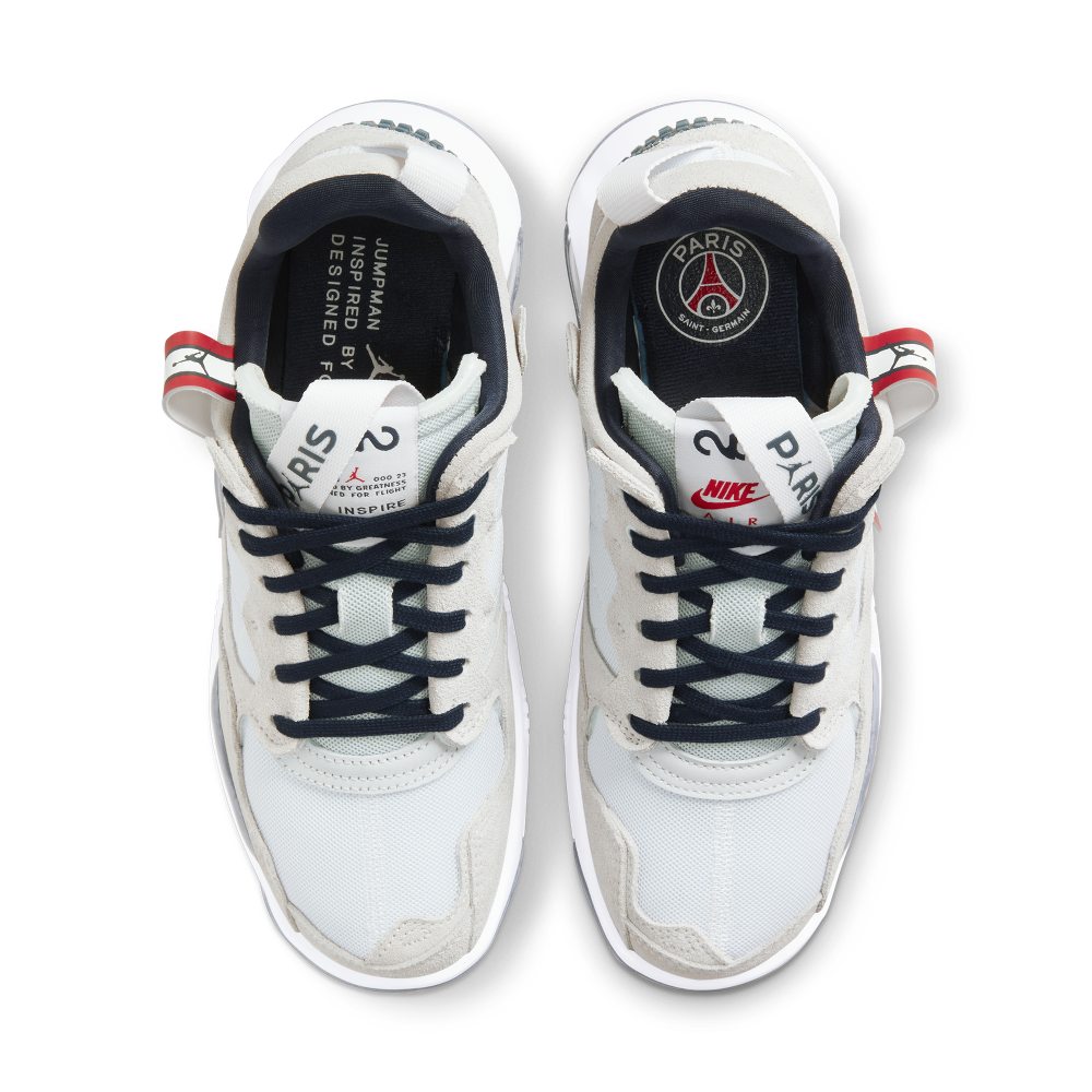 Heerlijk comfort en opvallende designlijnen.De Jordan MA2 Paris Saint-Germain verwijst naar streetwear met clubkleuren en afwerkingsdetails.Gevarieerde texturen en moderne designlijnen zorgen voor een look die is verbonden met Jordan heritage en geven de schoen een moderne, nieuwe identiteit. Details van Parijs Deze speciale versie is verbonden met Paris Saint-Germain dankzij details in de kleuren en afwerking.Het iconische embleem van de club is op de inlegzool gedrukt.Het Paris/Jumpman woordmerk staat langs het offset tonglabel. Big Air De voorgevormde middenzool van foam heeft een Max Air 200 unit in de hak voor een licht gevoel en demping, en een stevig en ondersteunend design. Mix van moderne materialen Een combinatie van synthetisch materiaal, textiel en suède zorgt voor een opvallende look die dik en gelaagd is, maar verrassend licht. Gemakkelijk aan, gemakkelijk uit De stroeve rubberen hielclip is ontworpen om alleen met behulp van je voeten uit je schoen te kunnen stappen. Extra zacht De zachte inlegzool met geperforeerd foam, en de kraag en tong van foam omsluiten je voet met comfort.
