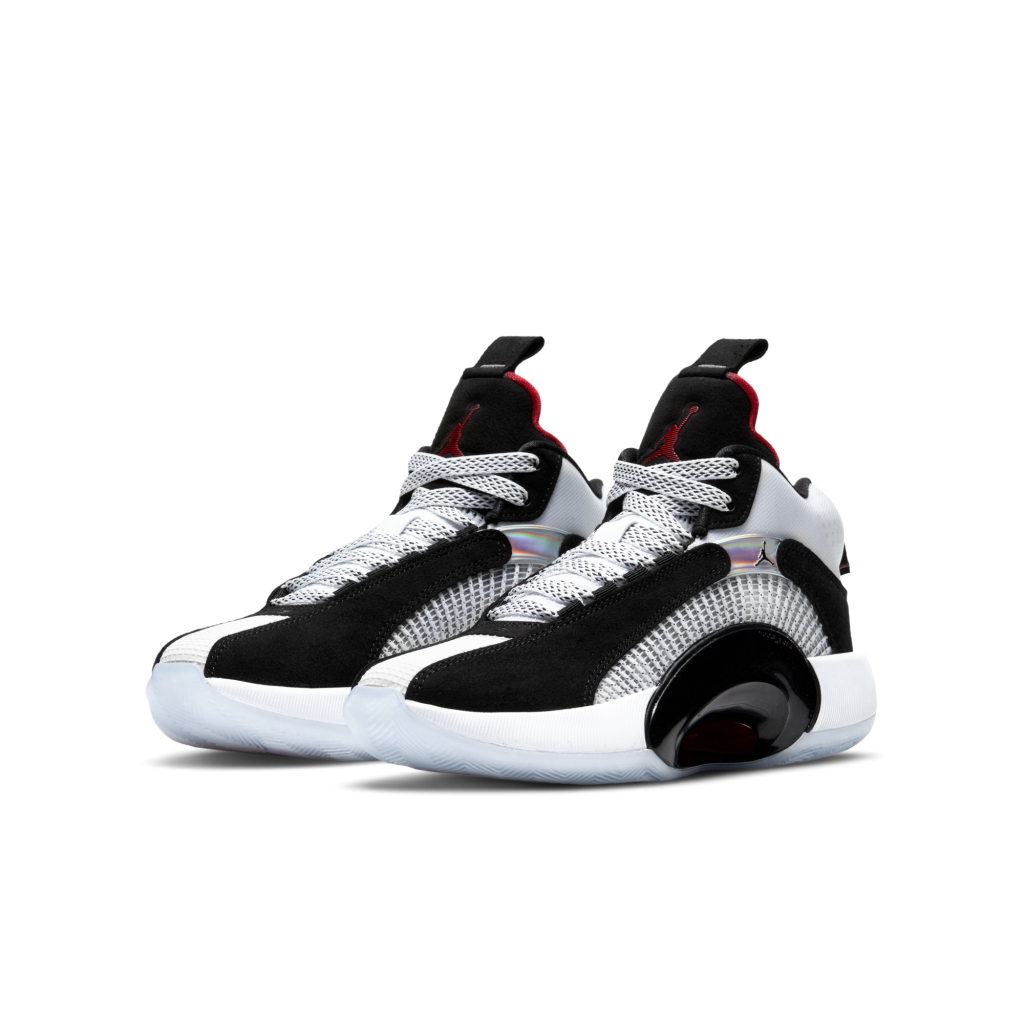 Het DNA van het merk Jordan is al sinds 1985 een mysterieuze combinatie van opstandigheid en grootsheid. De eigenschappen die de identiteit van het merk hebben vormgegeven maken een natuurlijk deel uit van de Jordan familie. Iedereen die Jordan vertegenwoordigt heeft samen met meer dan 35 jaar aan vindingrijkheid voor Air Jordan een geschiedenis gevormd die nog steeds wordt geschreven. De Air Jordan XXXV’DNA’vernieuwt de iconische vuurrode kleurencombinatie van de Jordan 5 en verbindt de vurige gevechtshouding en intensiteit van de jaren 90 met de innovaties van de toekomst. Doelgerichte ondersteuning De Eclipse 2.0 plaat biedt stabiliteit en ondersteuning bij zijwaartse bewegingen. De plaat is uitgehold om het totale gewicht van de schoen te verminderen. Zichtbare Zoom Zoom Air demping onder de hak en voorvoet geeft je een veerkrachtig, responsief gevoel. Stevige pasvorm Flightwire kabels die in de zijkant zijn gestikt lopen omhoog vanaf de gebogen plaat. Ze zorgen voor een stevige pasvorm en een aansluitend gevoel. Grip en controle De rubberen buitenzool heeft een aangepast visgraatpatroon. De schoen is ontworpen om je te helpen snel te starten, stoppen en van richting te veranderen.