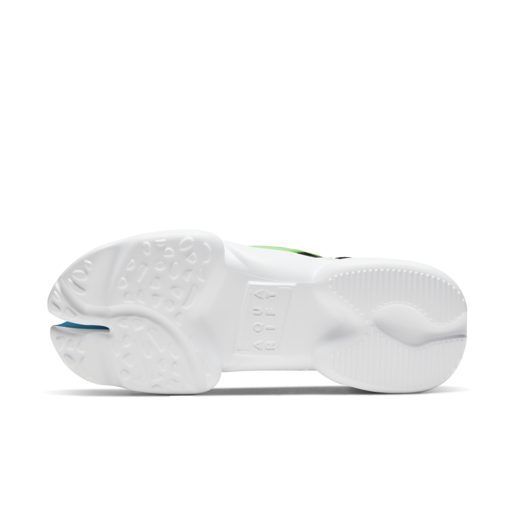 De Nike Aqua Rift combineert kenmerken van twee klassieke stijlen uit de jaren 90. Met zijn futuristische design moderniseert de schoen echte retro-strandstijl. De iconische gespleten neus van de Nike Air Rift ziet er anders uit dan welke schoen op straat dan ook. De overdreven vormen en cartooneske kleuren van de Nike Aqua lijn zorgen voor een bovenwerk dat van buiten de geschiedenis lijkt te komen.