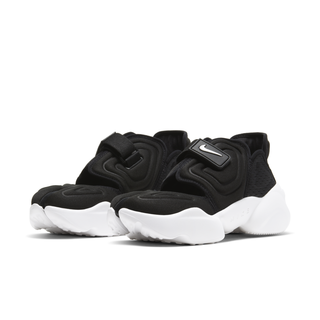 De Nike Aqua Rift combineert kenmerken van twee klassieke stijlen uit de jaren 90. Met zijn futuristische design moderniseert de schoen echte retro-strandstijl. De iconische gespleten neus van de Nike Air Rift ziet er anders uit dan welke schoen op straat dan ook. De overdreven vormen en cartooneske kleuren van de Nike Aqua lijn zorgen voor een bovenwerk dat van buiten de geschiedenis lijkt te komen.