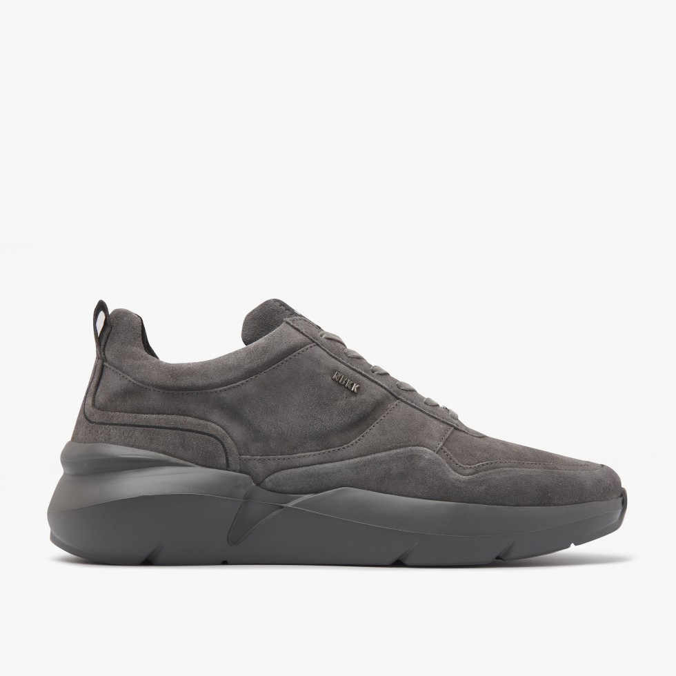 Elven Nagare is een nieuwe donkergrijze sneaker voor heren gemaakt van hoogwaardig suede. Uitgerust met unieke Nubikk-elementen en een extra comfortabele dikke lichtgewicht zool.