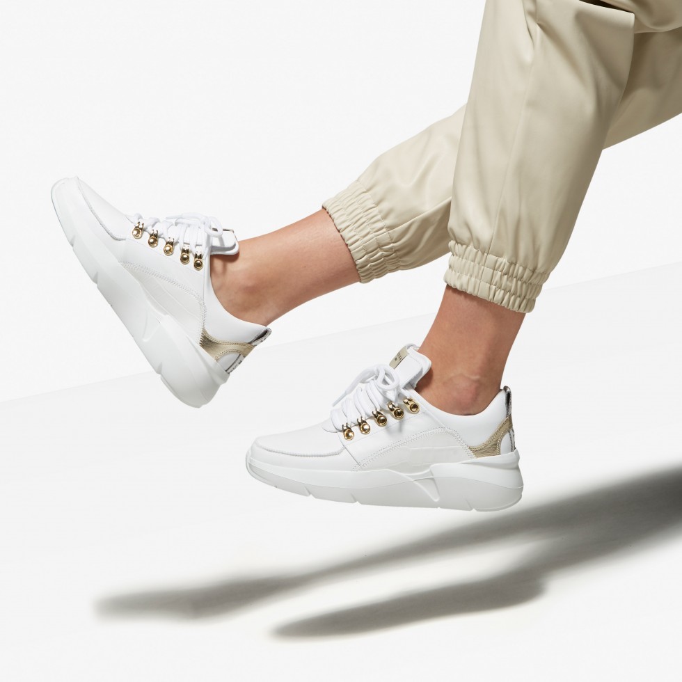 Lucy Royal is een witte sneaker voor dames en is gemaakt van hoogwaardig leer. Voorzien van pakkende gouden elementen en een extra comfortabele lichtgewicht zool.