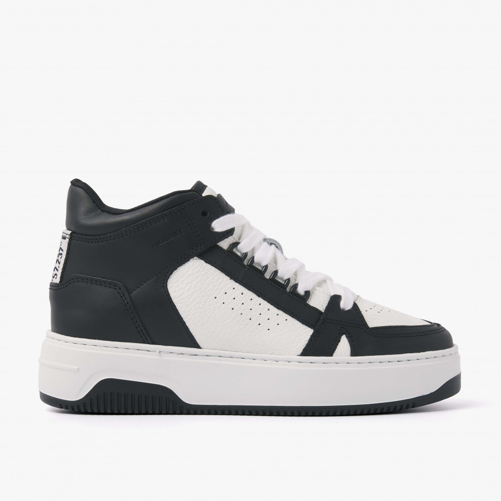 In de Nubikk’s Basket Mid zwarte sneakers voor dames zijn design elementen van retro basketbal sneakers terug te vinden. Deze high-top sneaker is gemaakt van premium leer, in combinatie met lichtgewicht zolen en een gewatteerde tong voor extra comfort.  • Handgemaakt in Portugal • Hoogwaardig leer • Geperforeerde neus • Lichtgewicht zool