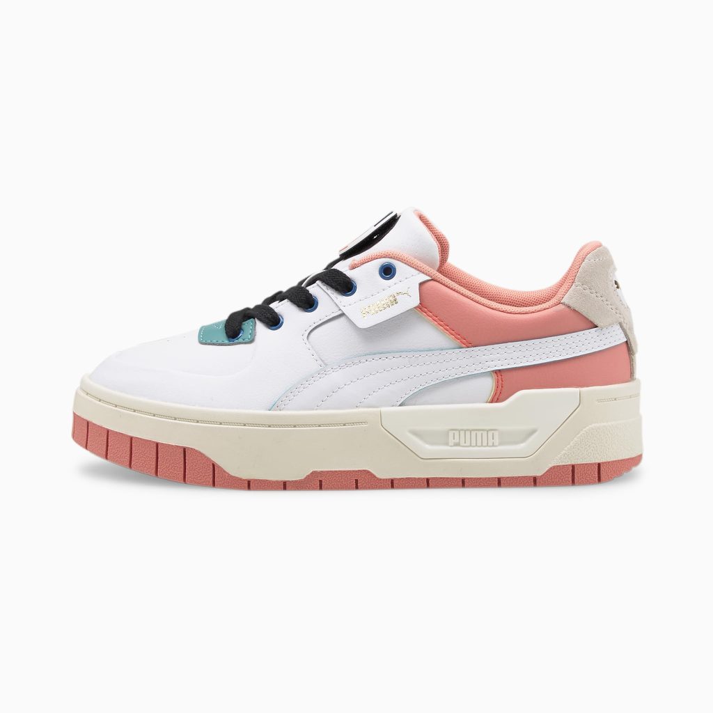 Relaxte strandmode krijgt een moderne boost van design en innovatie, perfect voor een frisse, speelse stijl in deze nieuwe interpretatie van het iconische PUMA Cali-model. Onze Cali Dream Go For sportschoenen zijn ontwikkeld als een liefdesbriefje voor atletiek, met klassieke lijnen uit het Cali-model met suède accenten en een verborgen, inspirerende boodschap op de siliconen klittenband-tongbadge om je aan te moedigen je grenzen te verleggen. Laag model Bovenwerk van zacht leer met PU-coating met imitatieleren en suède overlays Rubberen tussenzool Rubberen zool Tong van zacht PU-leer Siliconen tongbadge die een verborgen inspirerende boodschap onthult Suède hielstuk en kraag van imitatieleer Voering van gerecyclede mesh PUMA Formstrip van imitatieleer met stiksels in contrasterende kleur PUMA Cat-logo op de hiel. PUMA Cali Dream Go For sportschoenen voor dames wi