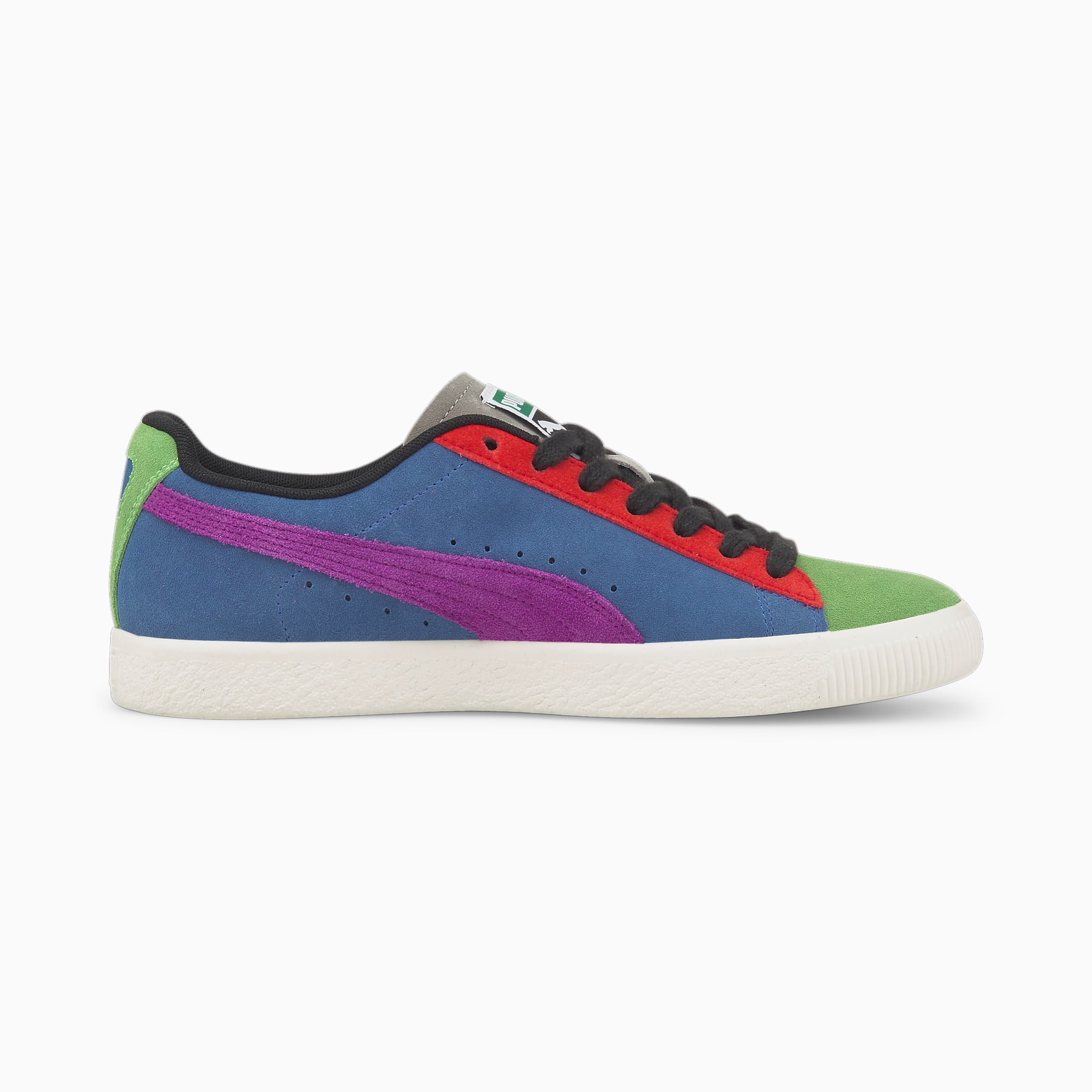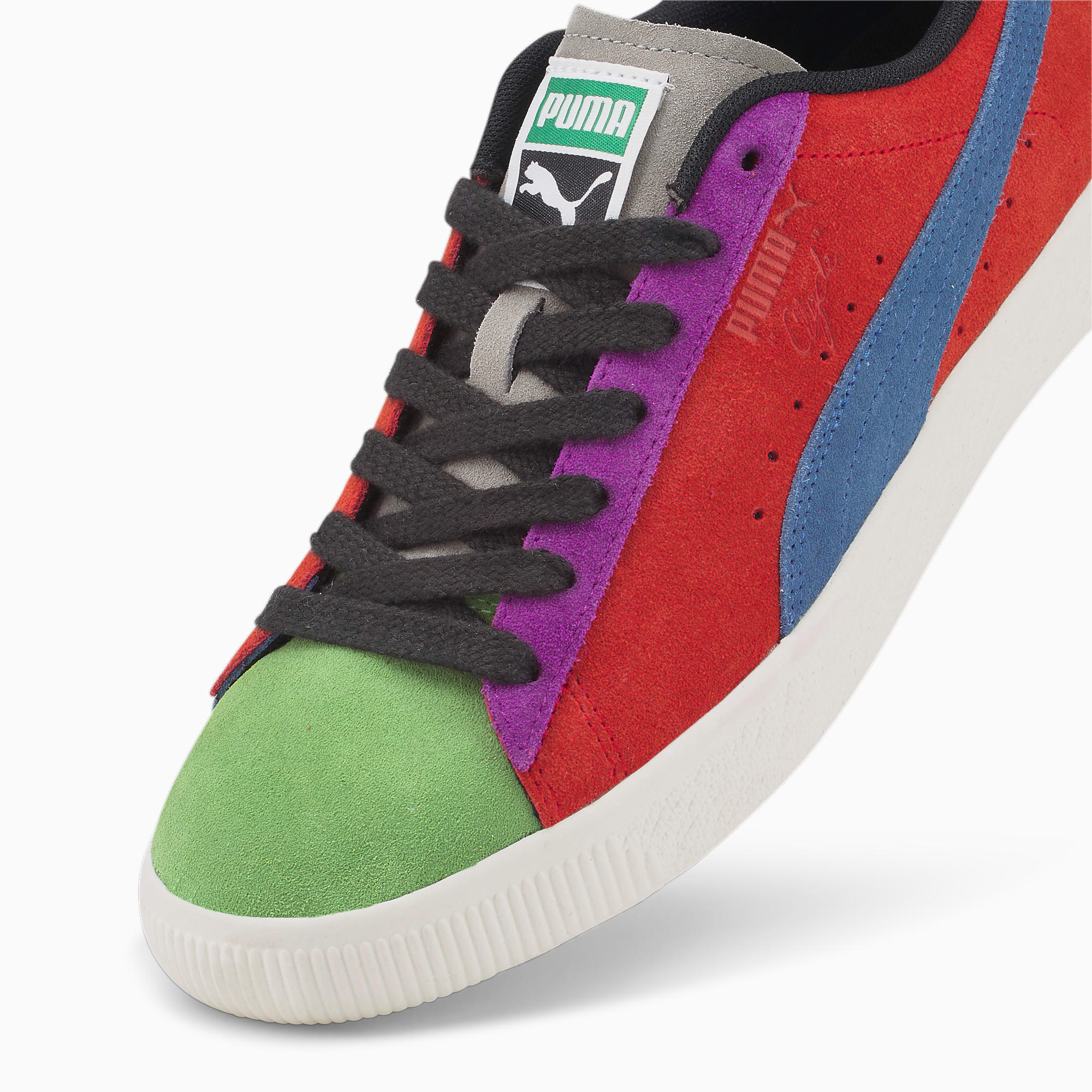 Meer dan een sneaker: de Clyde is een waar icoon uit de archieven van PUMA. In 2023 bestaat dit iconische model alweer 50 jaar. De Clyde Culture is ontworpen met verschillende kleuren suède voor ieder paneel, wat de culturele verscheidenheid van New York City symboliseert. ALLE INS EN OUTS LWG: Het leer dat in dit product wordt gebruikt, is afkomstig van milieuvriendelijke leerproductie en wordt gecontroleerd en gecertificeerd via het Leather Working Group-protocol. Bovenwerk geheel van suède PUMA Clyde-merkaccent in folie en reliëf op het zijpaneel Cat-logo in folie en reliëf op de hiel Geweven PUMA-label op de tong.