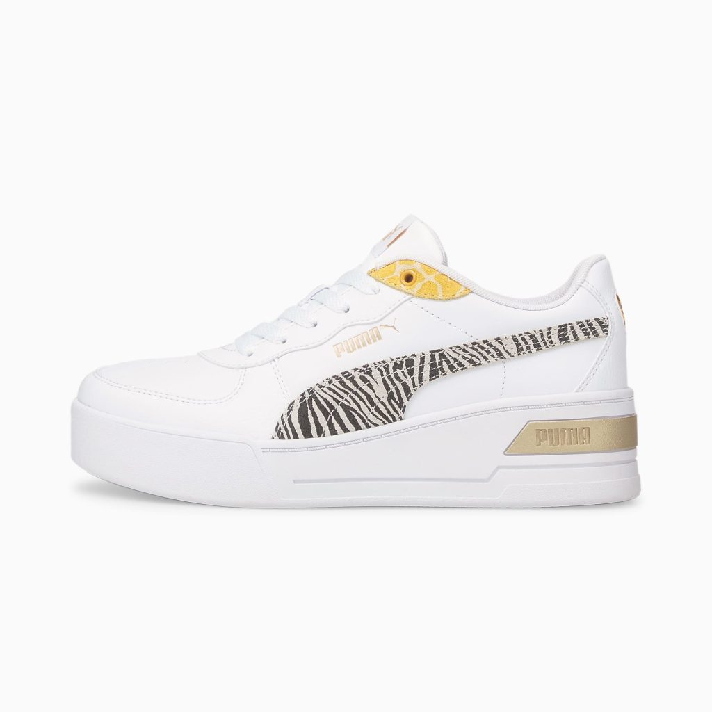 FEATURES and BENEFITS SoftFoam+: PUMAandapos;s comfortabele inlegzool waar je direct in kunt stappen en die langdurig comfort en zachte demping biedt bij elke stap IMEVA: PUMAandapos;s materiaal voor een licht en comfortabel gevoel Premium leren materialen Lichtgewicht zool met rubberen zijrand Sleehak Ontwerpelementen met dierenprint PUMA-logo op de hiel, schacht en tong. PUMA Skye Wedge Safari sportschoenen voor dames wi