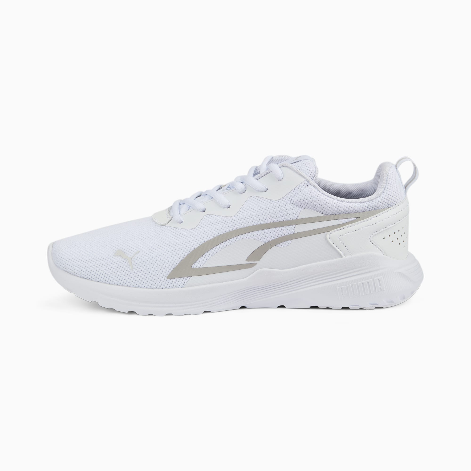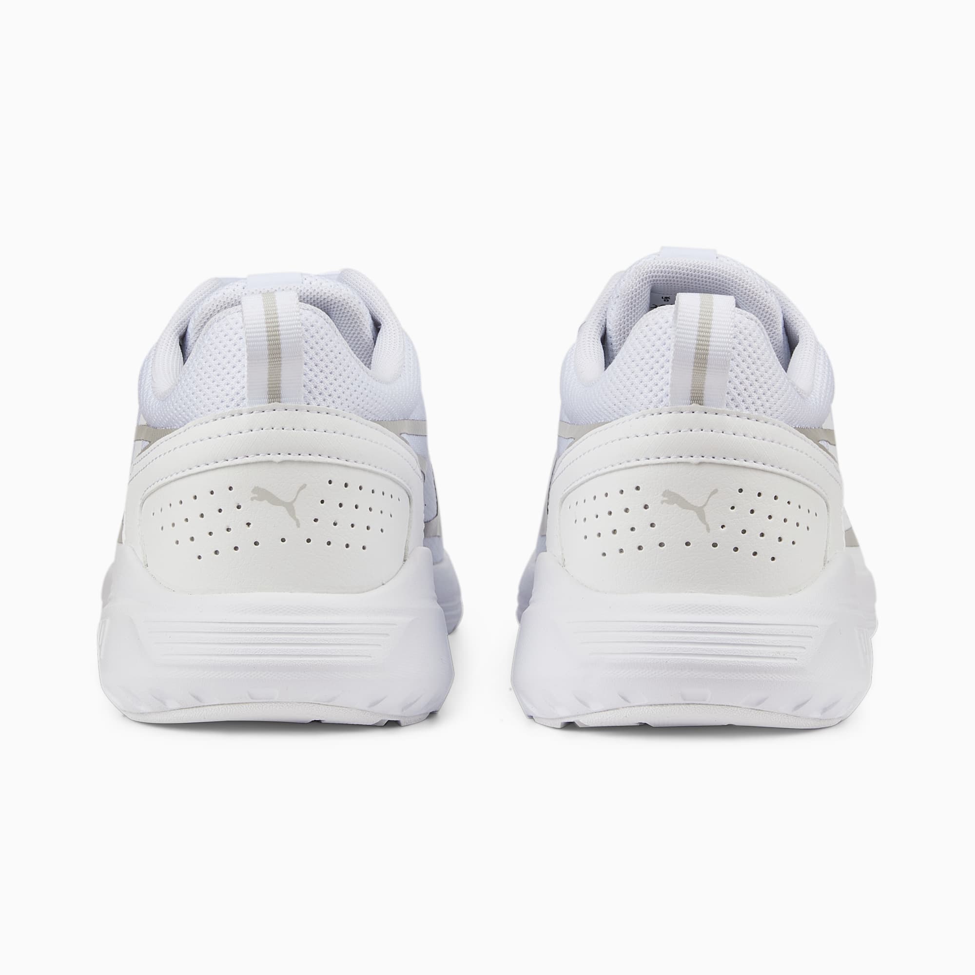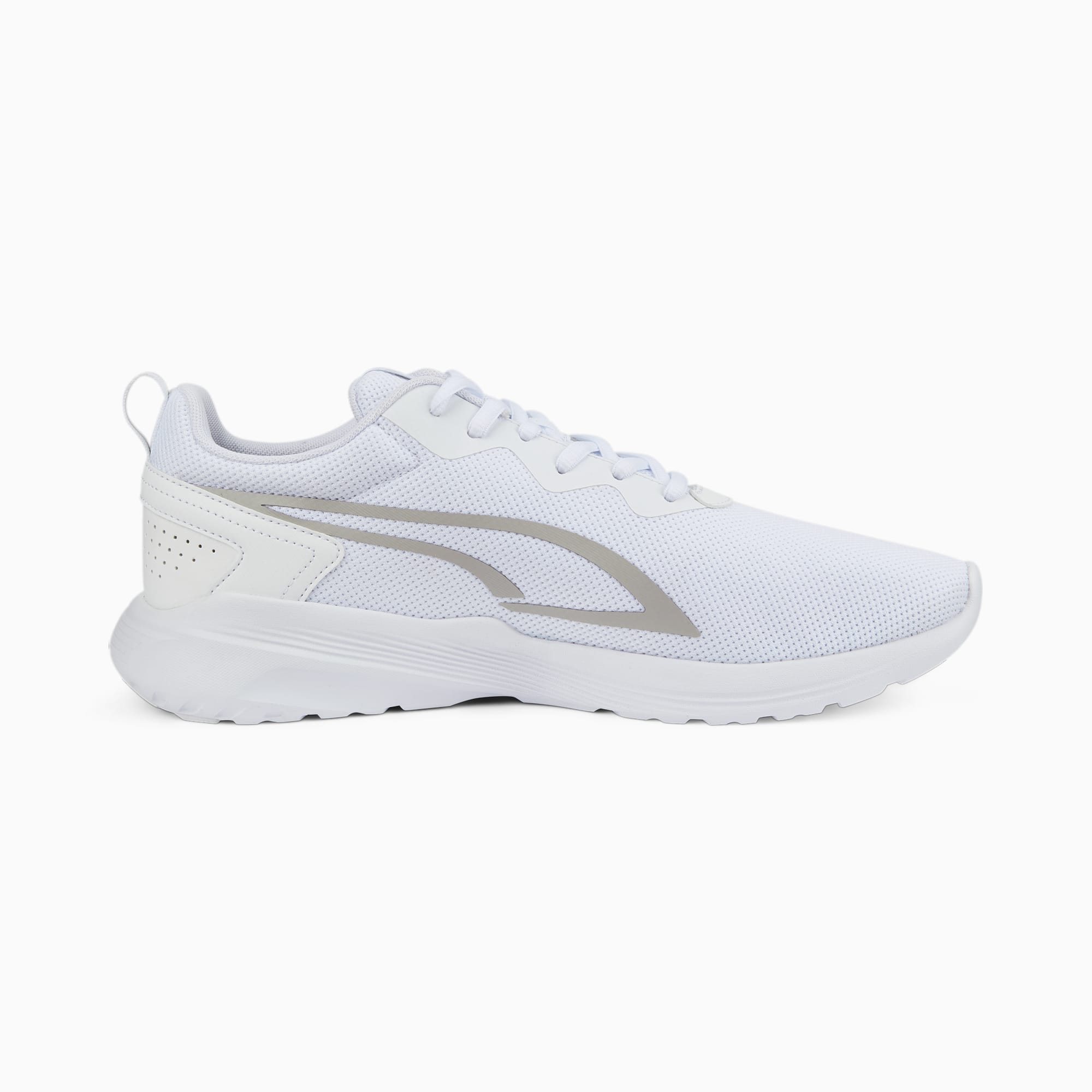 Onze All Day Active-sneakers zijn er helemaal klaar voor om toegewijde atleten te ondersteunen bij hun actieve levensstijl. Ze hebben een bovenwerk van ademend mesh, comfortabele demping, een opgestikte overlay op de hiel voor extra stabiliteit, rubberzones aan de onderkant van de zool voor betere grip en een gestroomlijnd silhouet. Hoe actief je ook bent, deze coole sneakers houden je bij. ALLE INS EN OUTS SOFTFOAM+: Comfortabele instap-inlegzool voor zachte demping dankzij de extra dikke hiel Bovenwerk van air mesh met warmtegeperste overlays Lichtgewicht IMEVA-tussenzool Rubberzones op de zool voor grip en duurzaamheid Opgestikte overlay op de hiel voor ondersteuning PUMA-katlogo op de zijkant van de neus Dynamische PUMA Formstrip op de beide zijkanten.