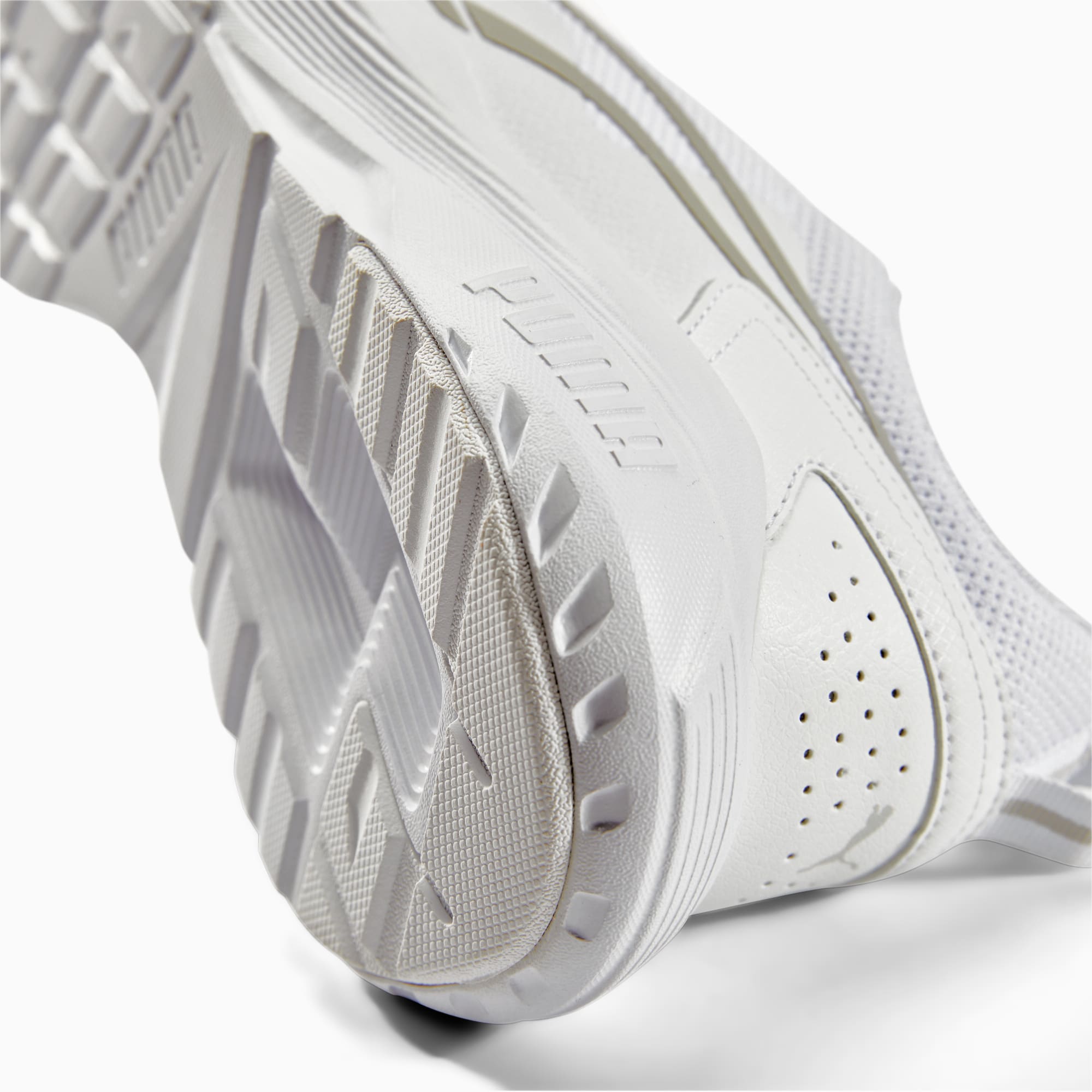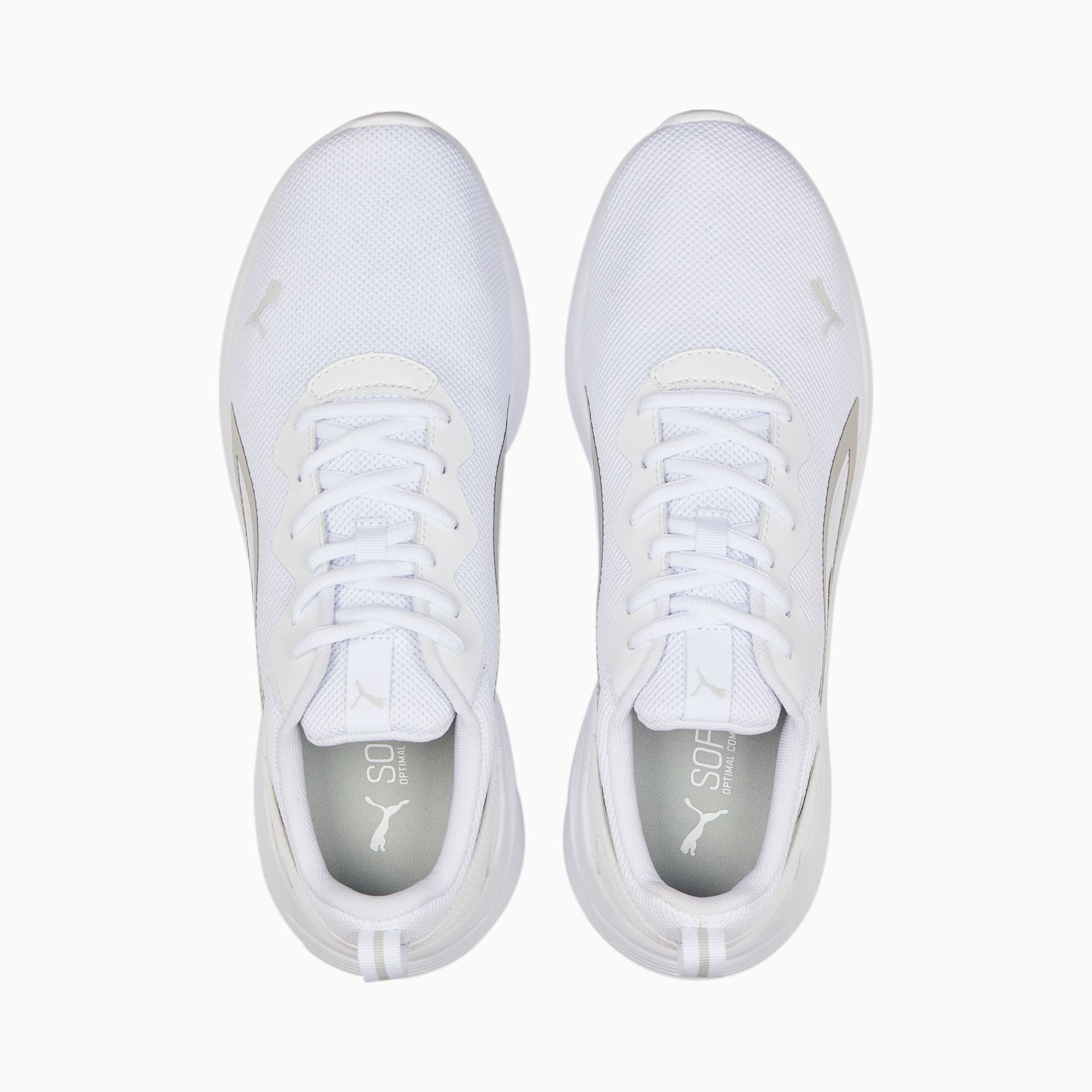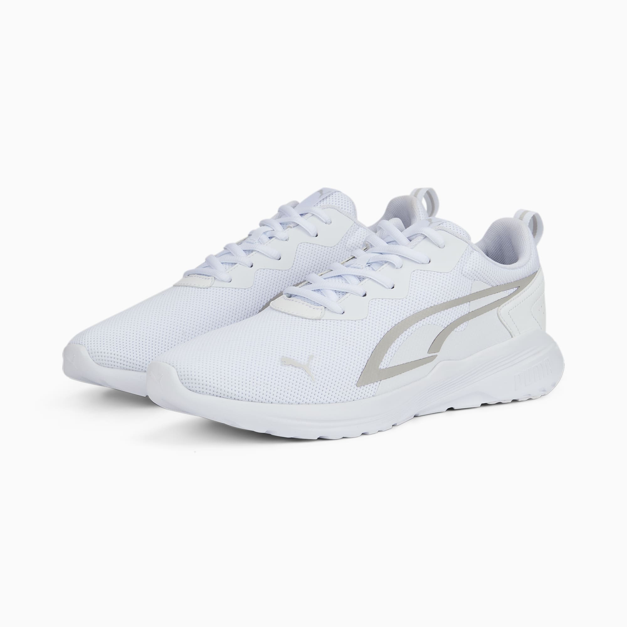 Onze All Day Active-sneakers zijn er helemaal klaar voor om toegewijde atleten te ondersteunen bij hun actieve levensstijl. Ze hebben een bovenwerk van ademend mesh, comfortabele demping, een opgestikte overlay op de hiel voor extra stabiliteit, rubberzones aan de onderkant van de zool voor betere grip en een gestroomlijnd silhouet. Hoe actief je ook bent, deze coole sneakers houden je bij. ALLE INS EN OUTS SOFTFOAM+: Comfortabele instap-inlegzool voor zachte demping dankzij de extra dikke hiel Bovenwerk van air mesh met warmtegeperste overlays Lichtgewicht IMEVA-tussenzool Rubberzones op de zool voor grip en duurzaamheid Opgestikte overlay op de hiel voor ondersteuning PUMA-katlogo op de zijkant van de neus Dynamische PUMA Formstrip op de beide zijkanten.