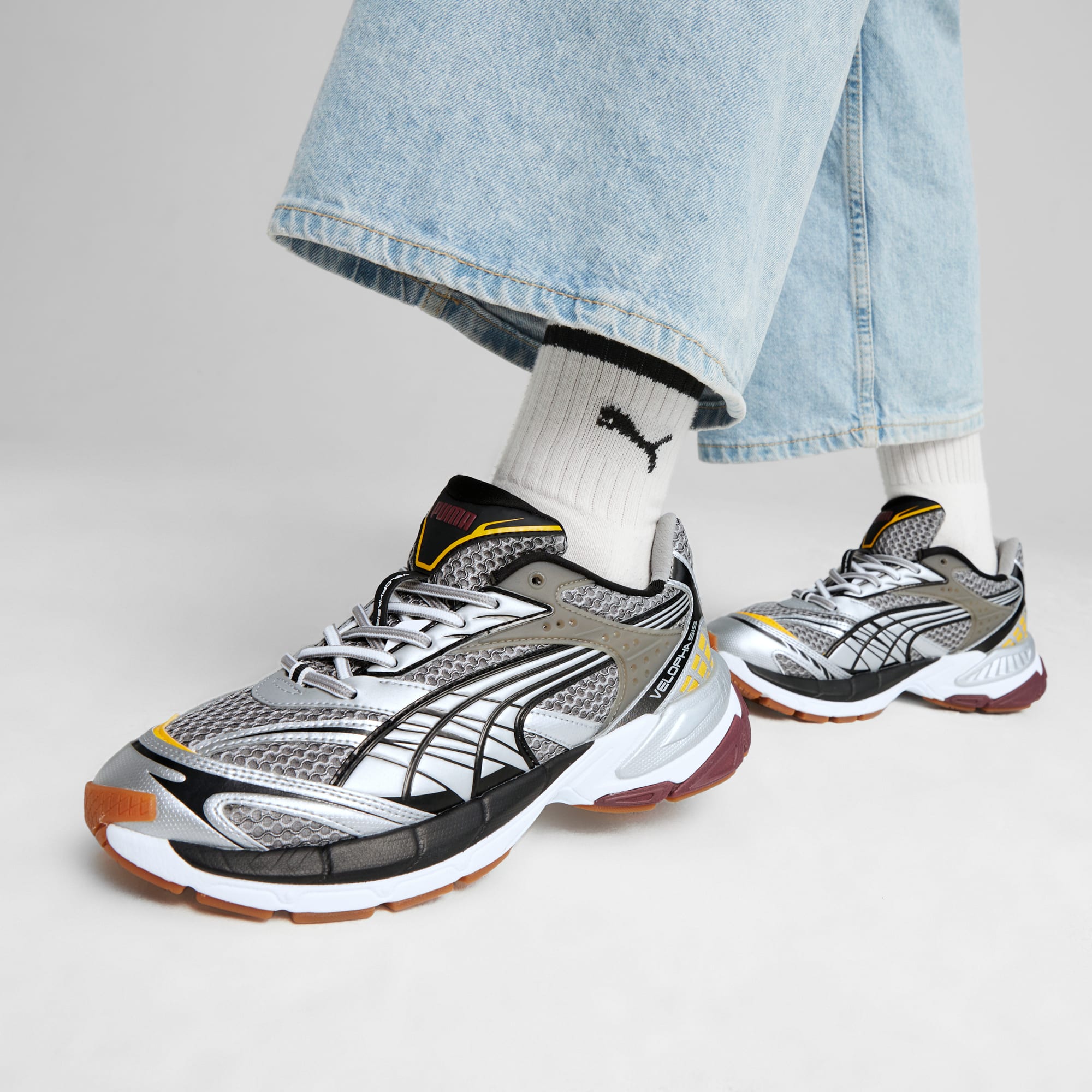 De Velophasis is geïnspireerd op de stijl uit de jaren 2000 en PUMA’s historische hardloopcollectie, opnieuw ontworpen om iets nieuws en authentieks te creëren. Een basis van open mesh, synthetische overlays en een doorschijnend gegoten TPU-stuk zorgen samen voor een technische, dynamische look die de aandacht opeist. Maak kennis met je nieuwe favoriete sneakers. ALLE INS EN OUTS Veganistisch gecertificeerd product SOFTFOAM+: Comfortabele instap-inlegzool voor zachte demping dankzij de extra dikke hiel Open mesh basis Imitatieleren veterstrook en overlays met geprinte en reliëflijnen Doorschijnend, voorgevormd TPU-stuk CMEVA-tussenzool Rubberen buitenzool Imitatieleren PUMA Formstrip met print en reliëflijnen PUMA-woordmerk en Velophasis-branding op de tong.
