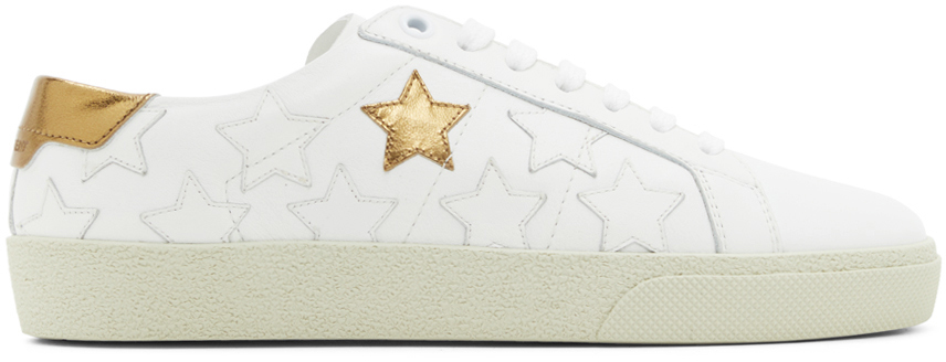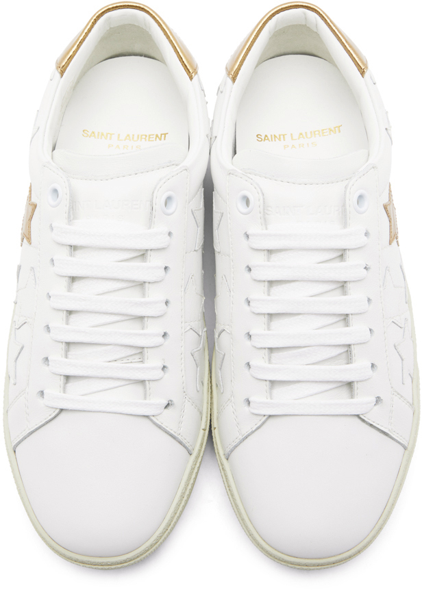 Saint Laurent White & Gold Star Court Classic Sneakers (592541 00N90)