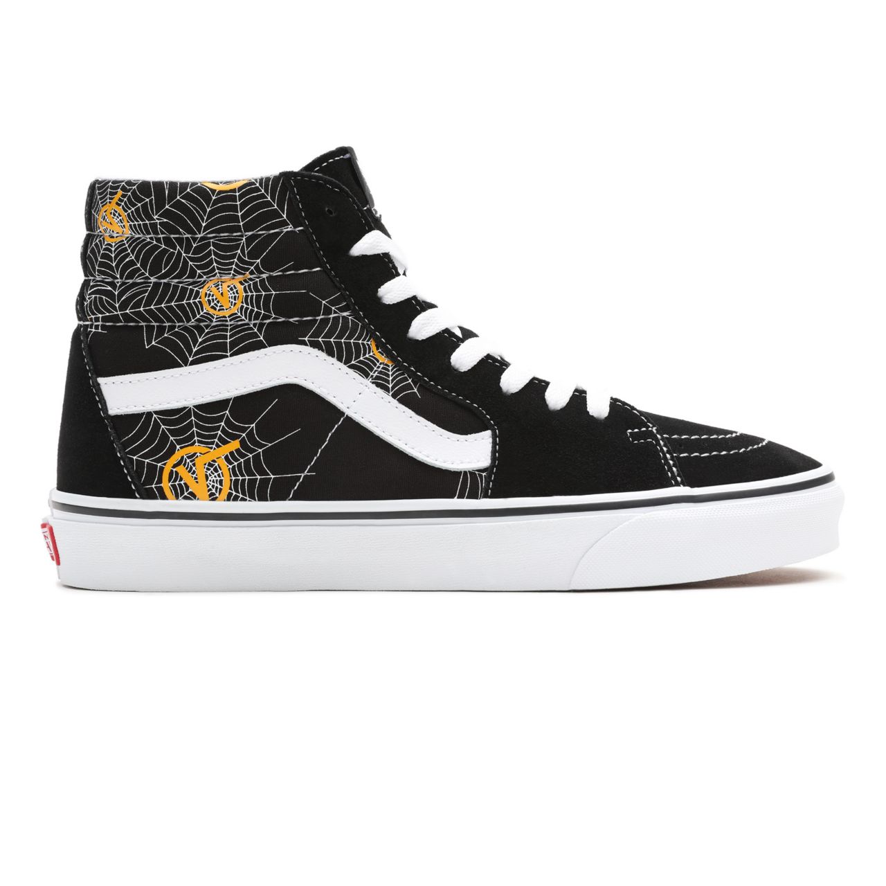 De Printed Sk8-Hi combineert de legendarische hoge veterschoen van Vans met een bovenwerk van stevig sude en canvas met een spinnenweb-logoprint. Daarnaast heeft de schoen een verstevigde neus tegen slijtage, een gevoerde kraag voor steun en flexibiliteit en de kenmerkende rubberen wafelzool. Composition :Sude, canvas